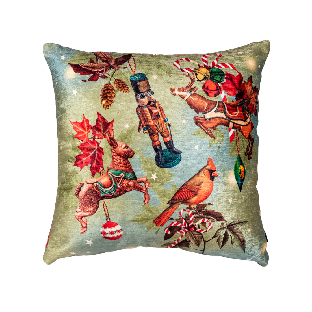 Confeccionado en terciopelo y decorado con una impresión de sublimación, este diseño ofrece un toque único a tus espacios. Combínalo con su diseño complementario.