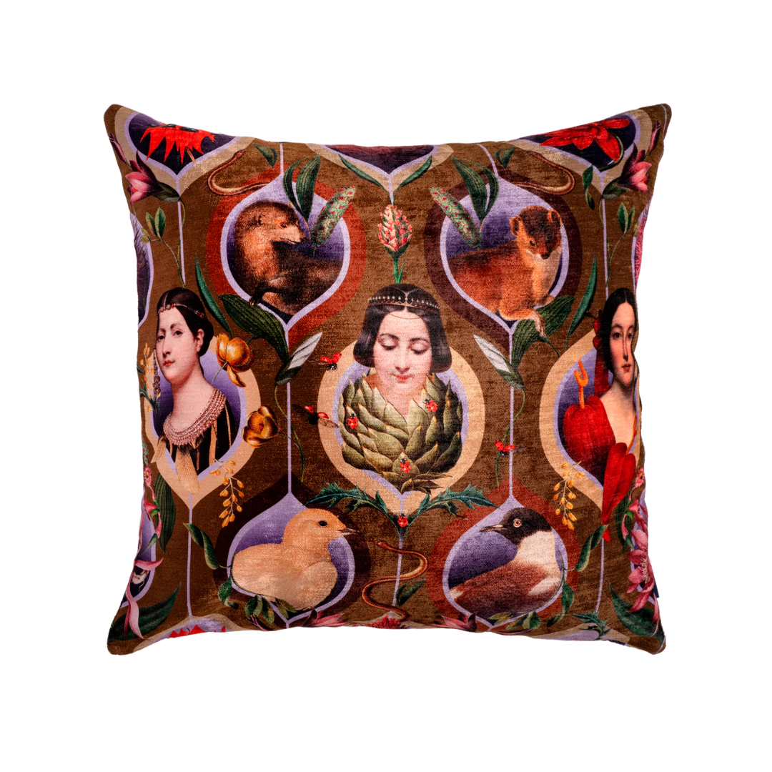 Nuestro cojín Retro es una pieza elegante y exclusiva creada con la técnica de sublimación, que garantiza colores vibrantes y duraderos en un suave y lujoso terciopelo. Combínalo con su diseño complementario.