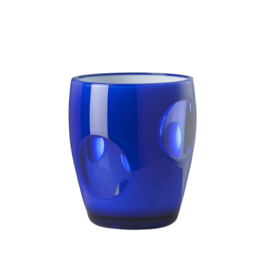 Inspirado en la elegancia de Florencia y Milán, creó objetos de vidrio y cristal coloridos que destacan por su versatilidad. Este set de 6 vasos combina formas sofisticadas y colores vibrantes, adaptándose a cualquier espacio: desde mesas en casa hasta jardines o barcos.