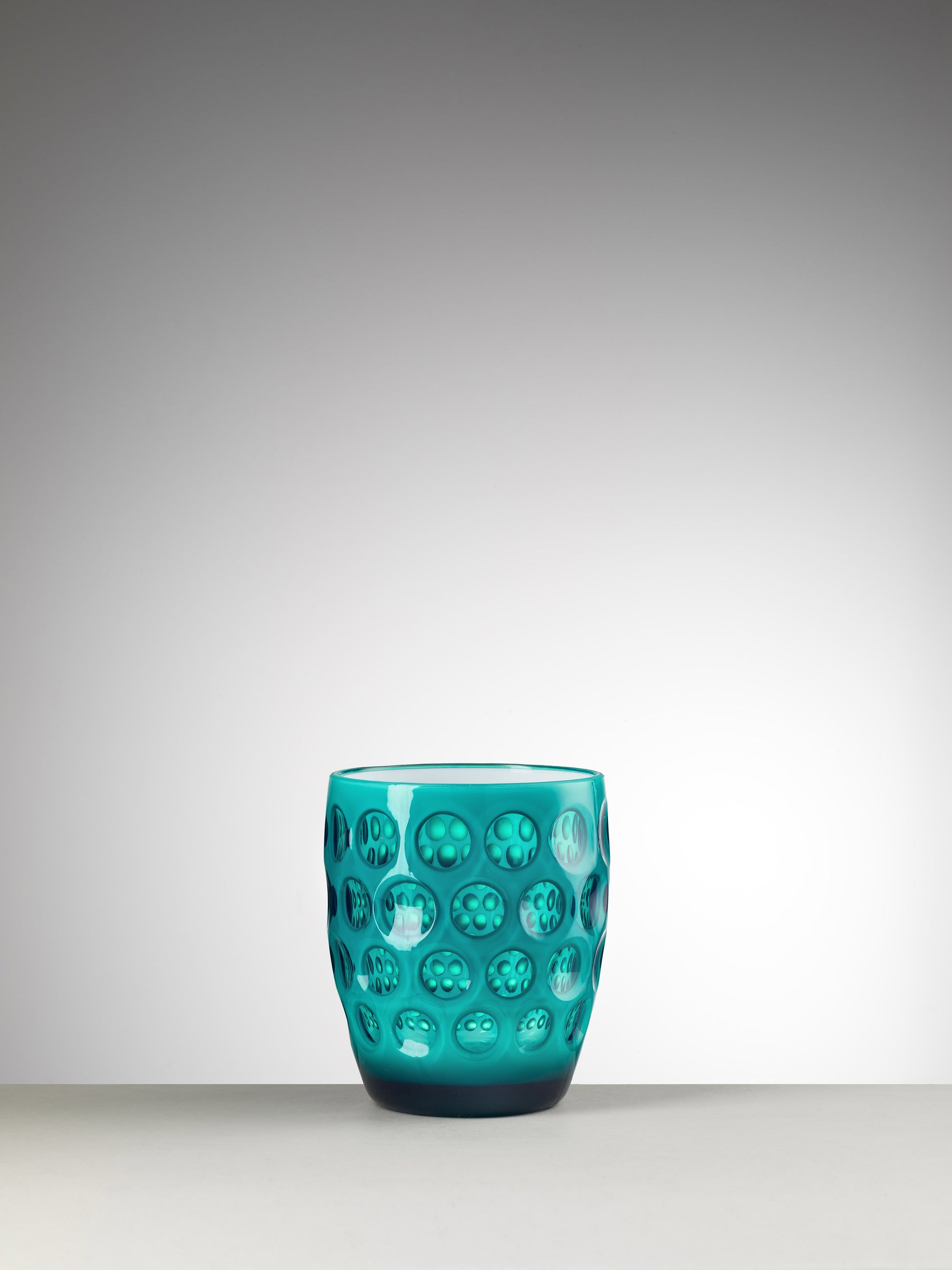 Inspirado en la elegancia de Florencia y Milán, creó objetos de vidrio y cristal coloridos que destacan por su versatilidad. Este set de 6 vasos combina formas sofisticadas y colores vibrantes, adaptándose a cualquier espacio: desde mesas en casa hasta jardines o barcos.