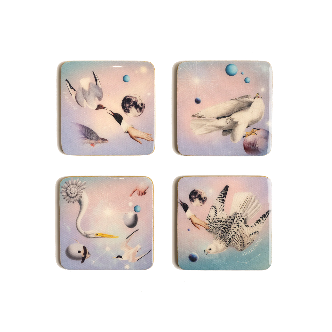 Con 4 diseños complementarios impresos en poliéster mediante sublimación, estos porta vasos cuentan con una base de madera y recubrimiento de resina para mayor durabilidad. Perfectos para proteger tus superficies y darle estilo a tu hogar.