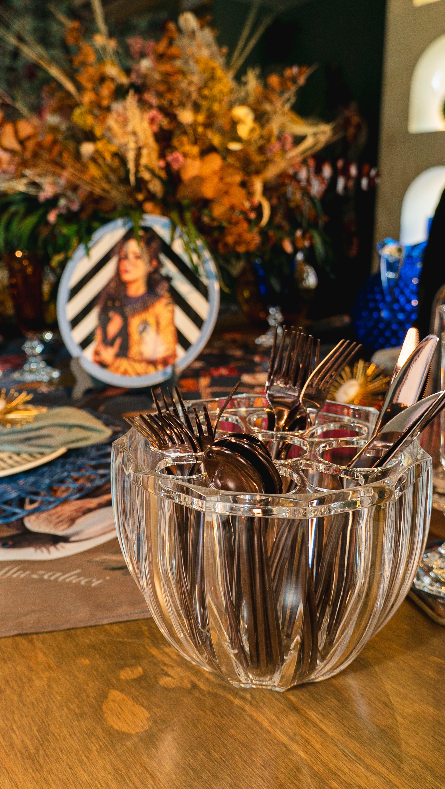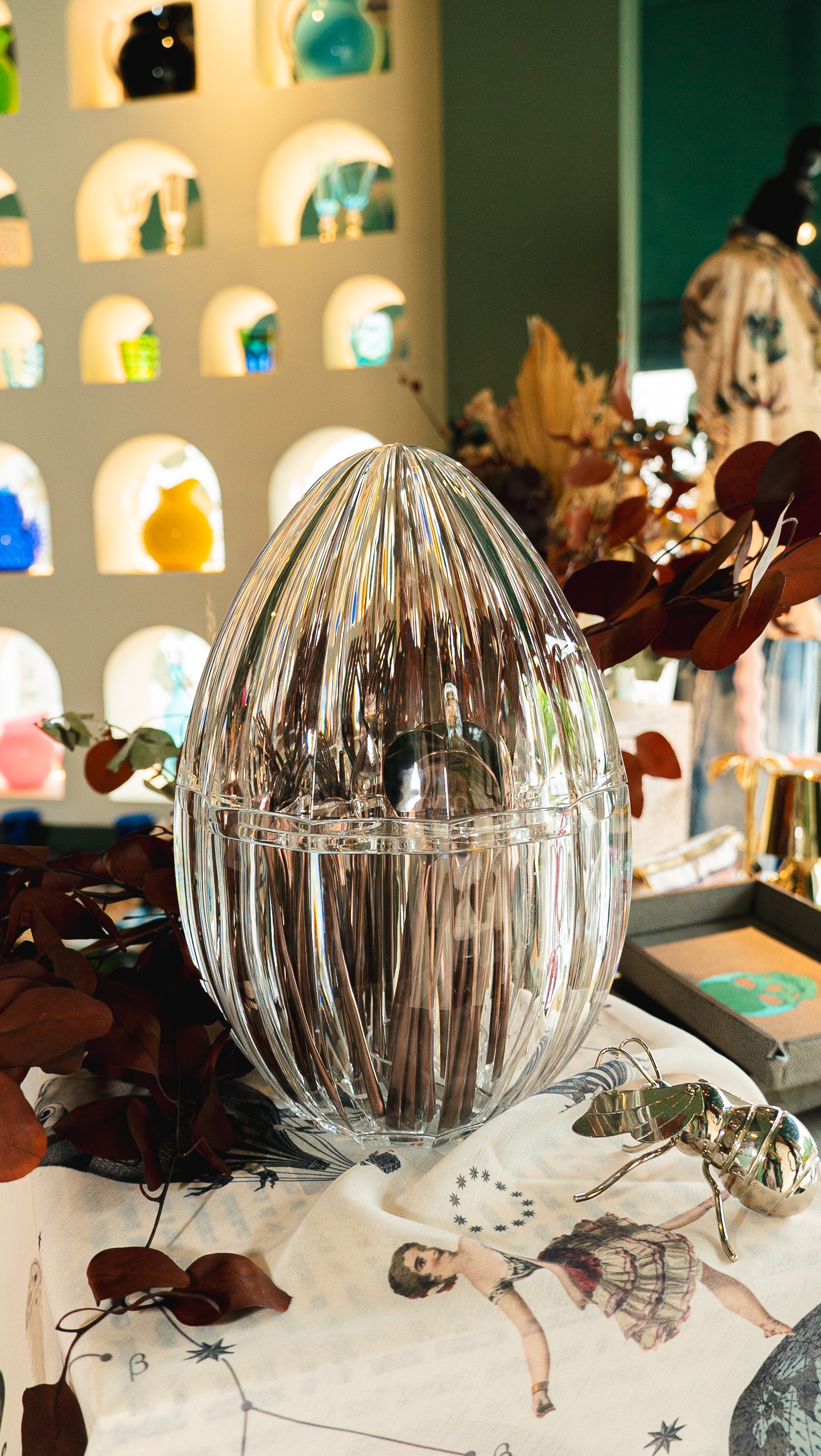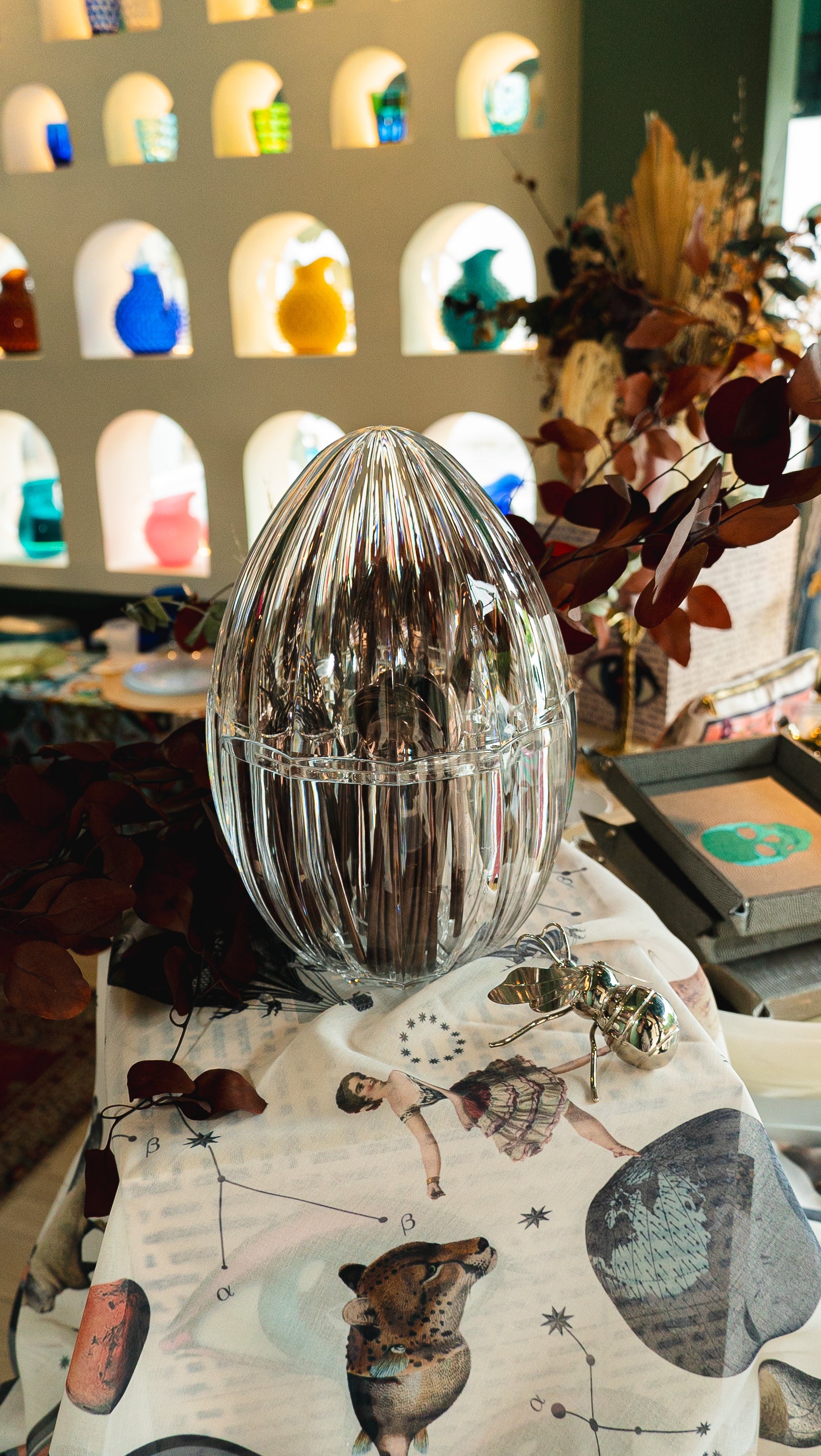 Inspirado en la elegancia de Florencia y Milán, creó objetos de vidrio y cristal coloridos que destacan por su versatilidad. Versátil y funcional: úsalo como porta cubiertos, hielera o hasta para guardar huevos en tu cocina.